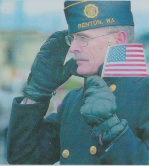 This picture was taken on July 27, 1943.  Grandfather Day (mothers father) is shown standing right center on the keel of the ship.  The other photo is me, taken during the Auburn Washington VETERANS DAY PARADE two weeks ago.  I am a member of American Legion Post 19, Renton, WA.